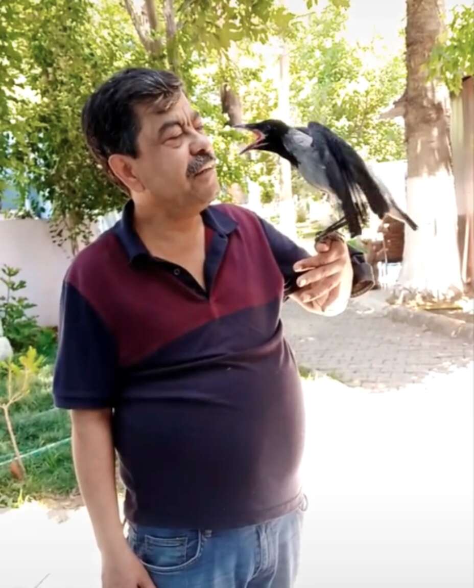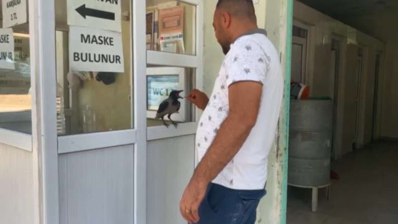- İsmail Atmaca was working in his booth at a mosque when he noticed that a young crow has fallen from a tree.