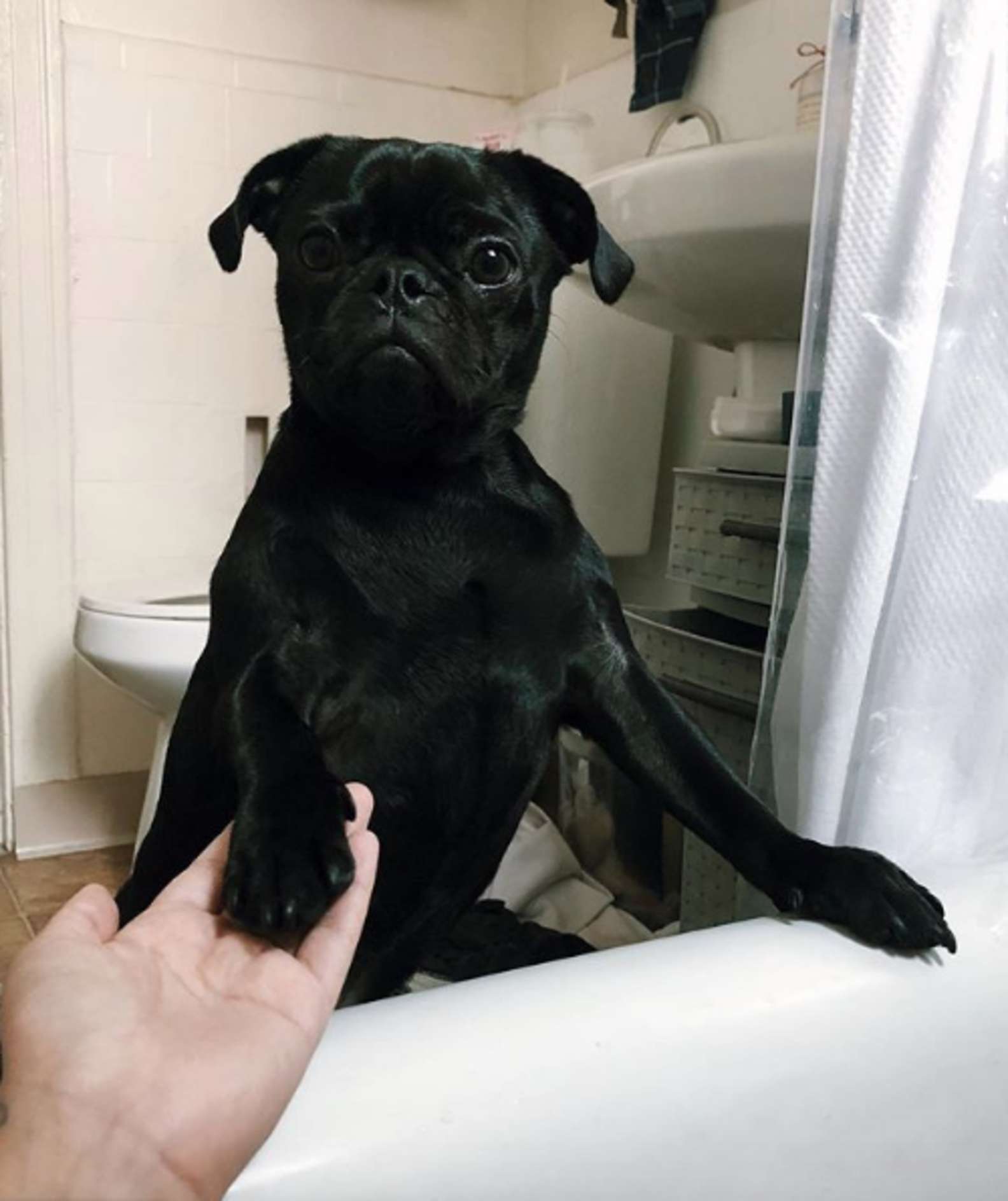 Bath-Hating Pug Offers Moral Support During Mom’s Bath Time [Video]
