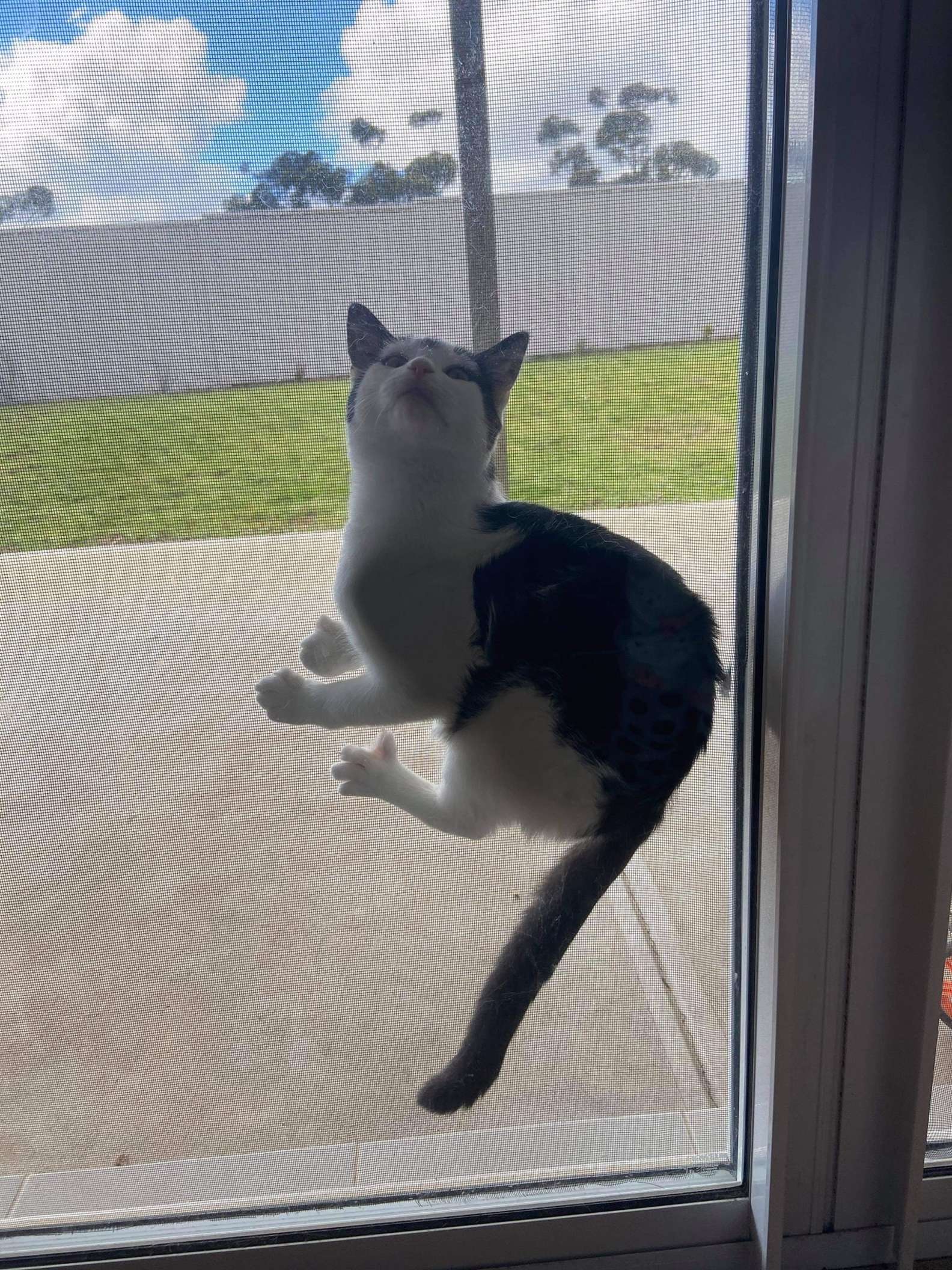 “They were crying at the screen while we chalked the patio, so when we were done we let them out. They were covered almost immediately,” Rodger Sherman told The Dodo.