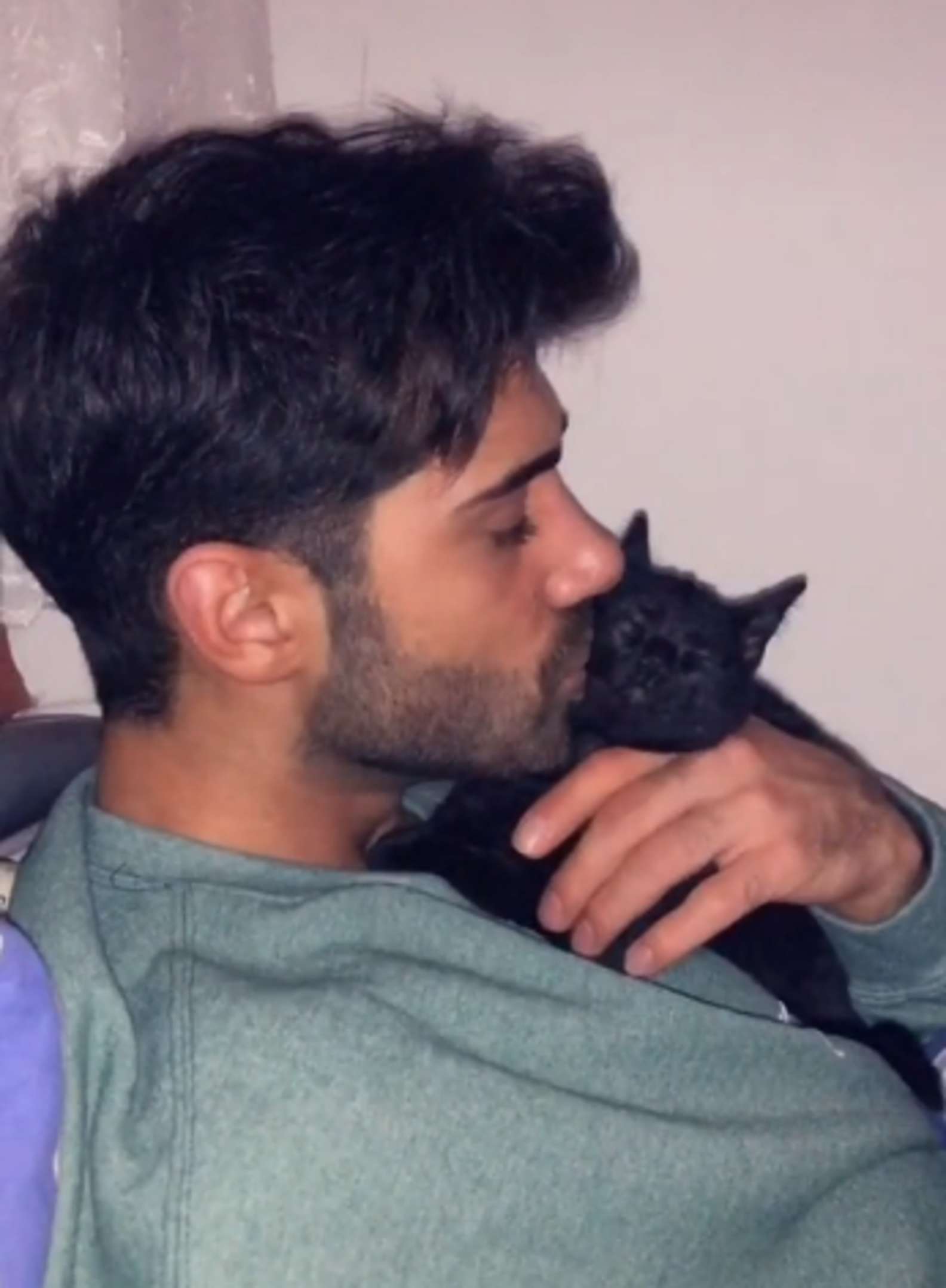 Merayad’s brother had found the black cat when she was living as a stray in Germany. Merayad did not plan on getting a cat, but he fell in love with her after he helped to take care of her.