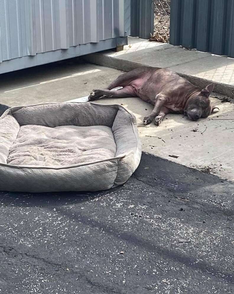 In an empty parking lot in Austin, Texas, a dog named Bluebelle waited patiently for someone to notice her. The senior pit bull had nothing but her dog bed to comfort her from the hot pavement.