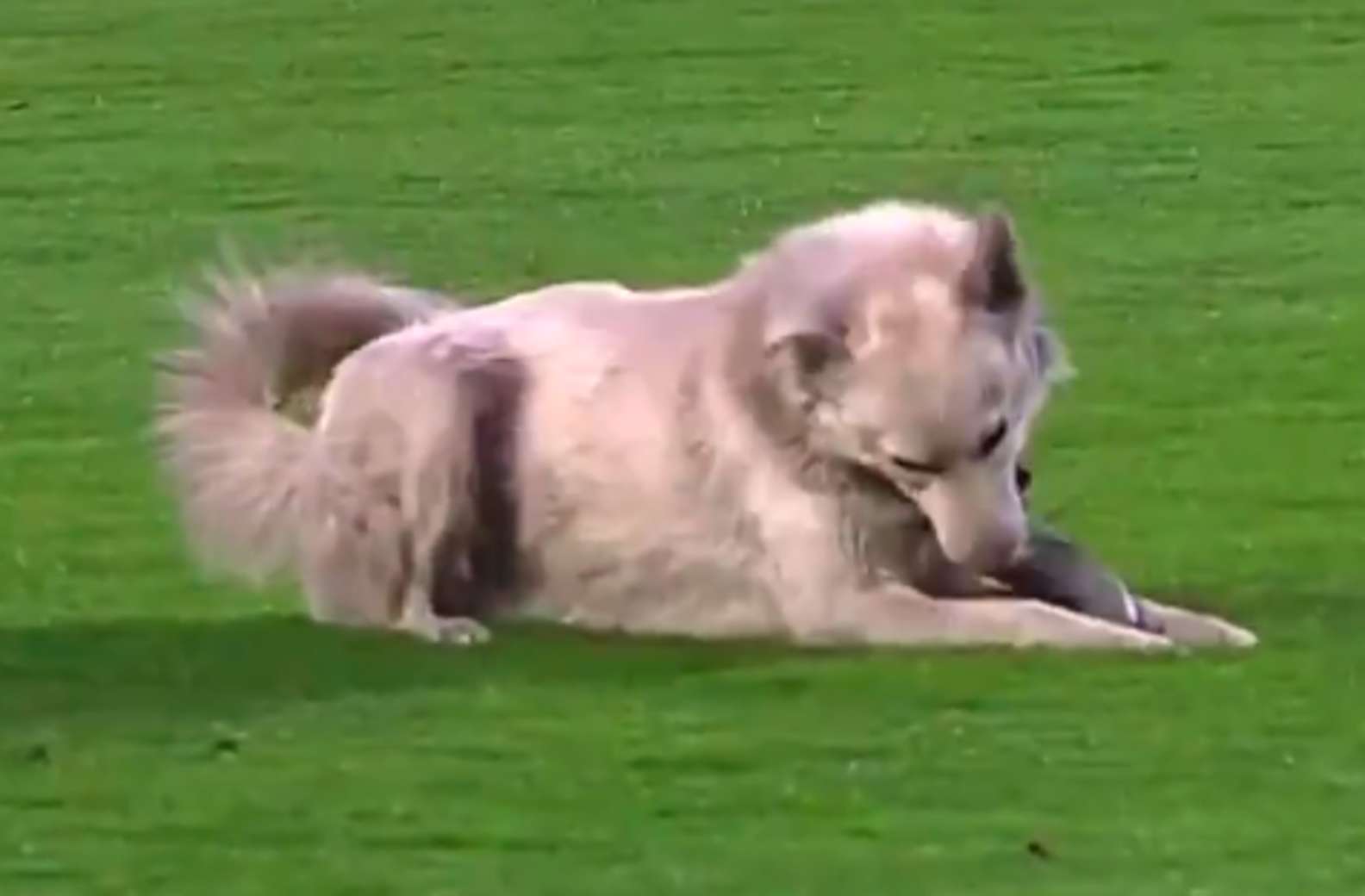 • The soccer match had to be paused until the pup could be approached and carried off the pitch.