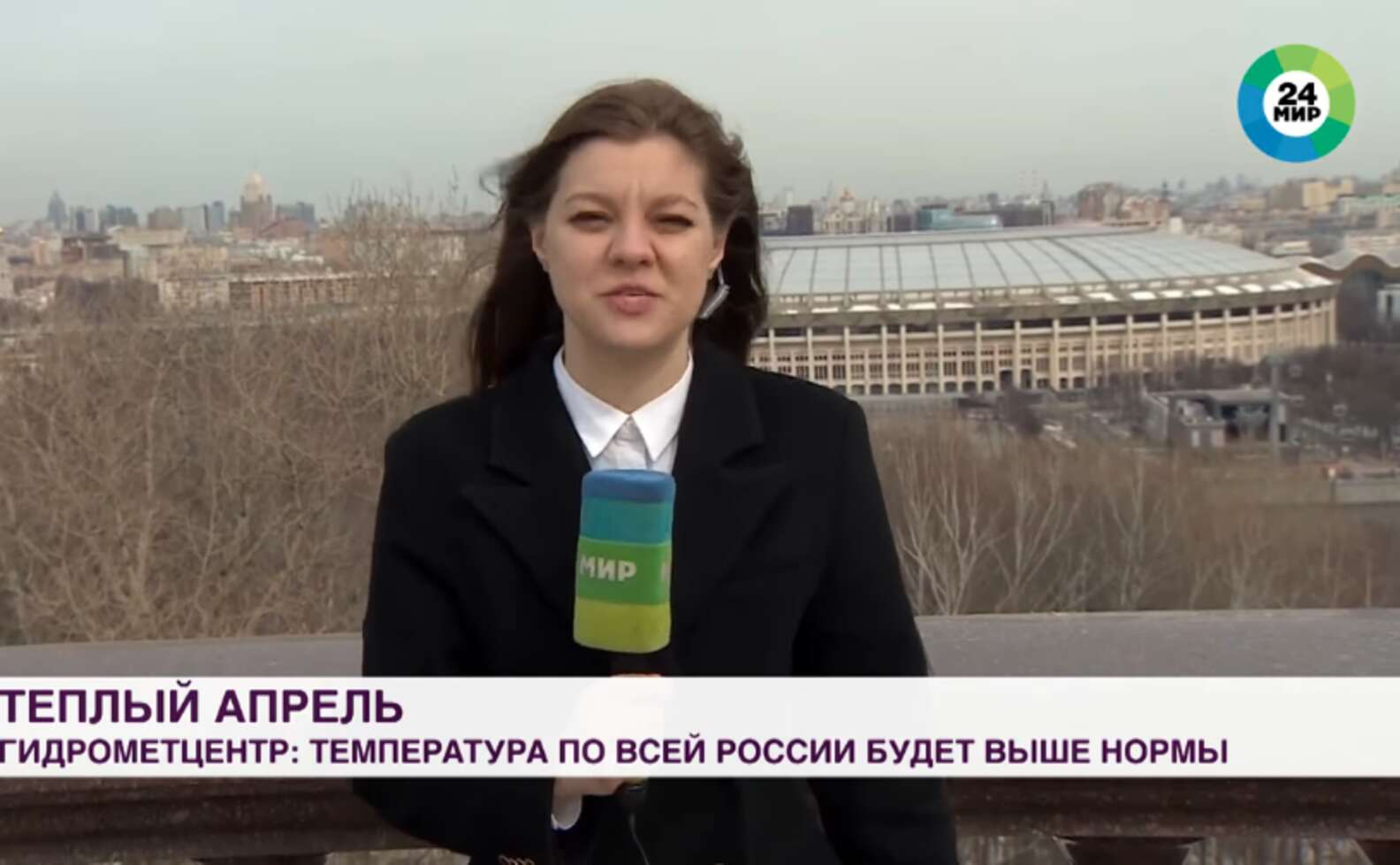 Serezhkina had barely started her live weather report for MIR24 when the dog stole the spotlight — and her microphone.