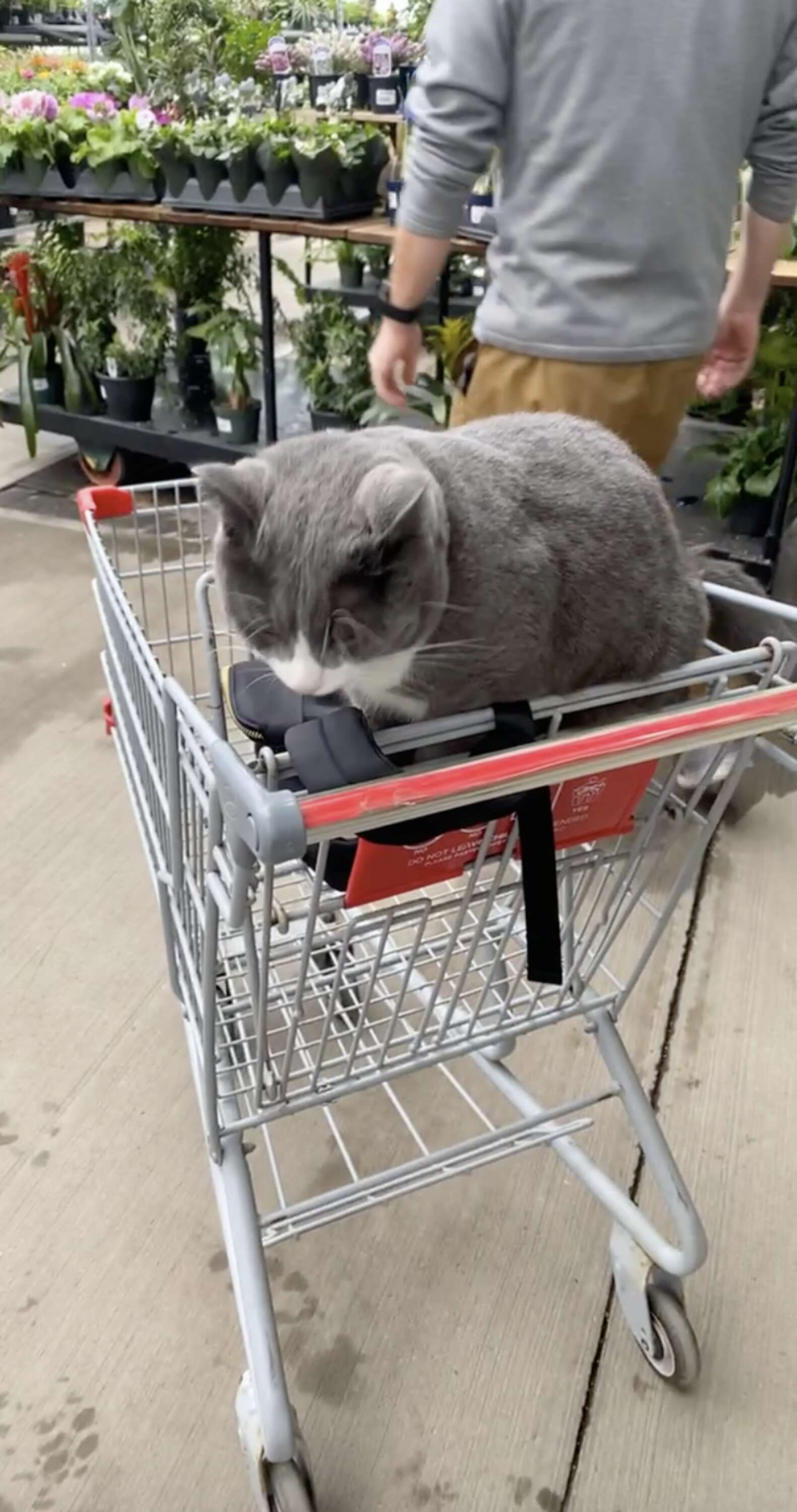 - He’s used to jumping on shoppers’ carts as he likes being pushed around the store.