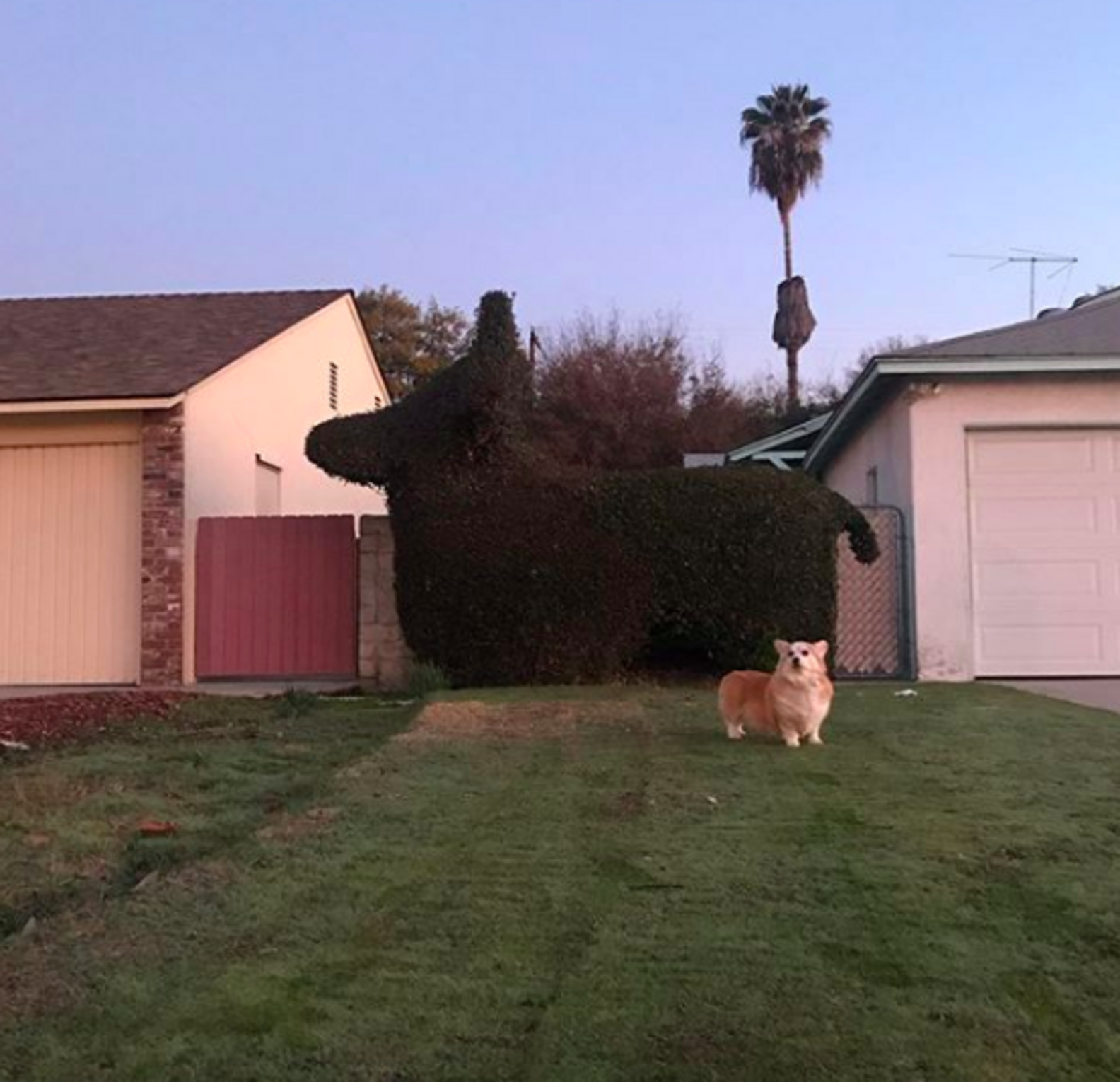 “I instantly thought it was a corgi-shaped hedge. Maybe that’s just what my brain defaults to ’cause my dog is a corgi,” Matt shared.