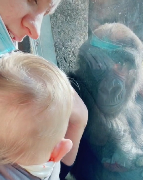 In a second video shared by Kate, a younger gorilla expressed more interest and immediately ran up to the glass as soon as she spotted the baby. It even looked like she blew Kate a goodbye kiss when she left!