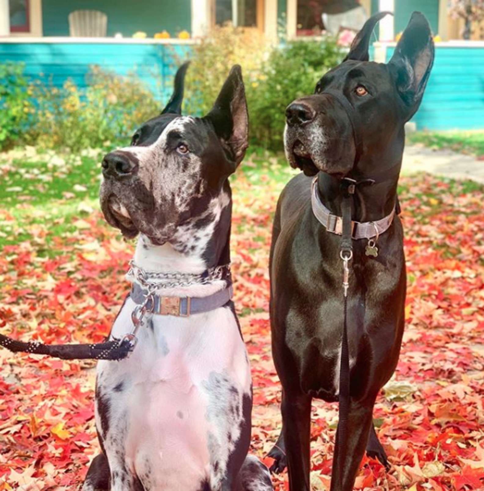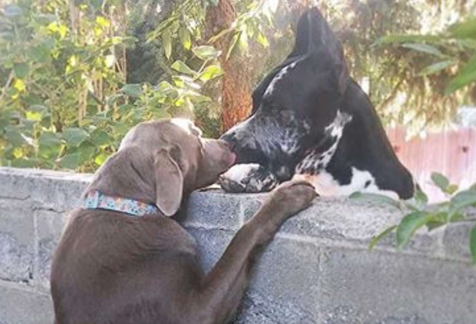Meet Vito and Bambino. Blessed with length and height, the two Great Danes can easily make friends with their neighbors despite the high wall that separates them.
