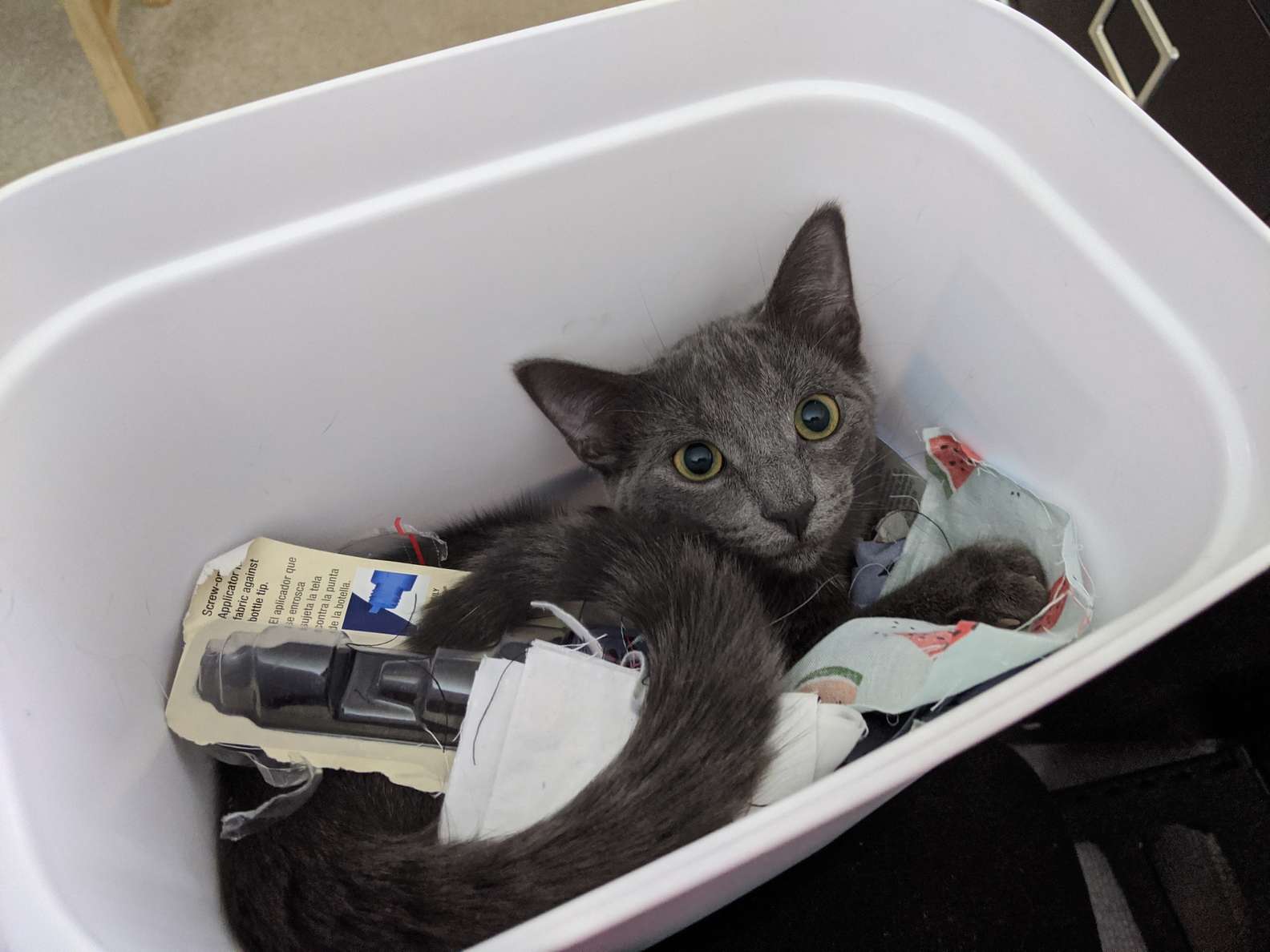 Soon enough, Graycie was caught in the act of stealing her sister’s food. Allison made sure the sneaky cat knew she was caught, so she scolded her through the baby monitor’s microphone.