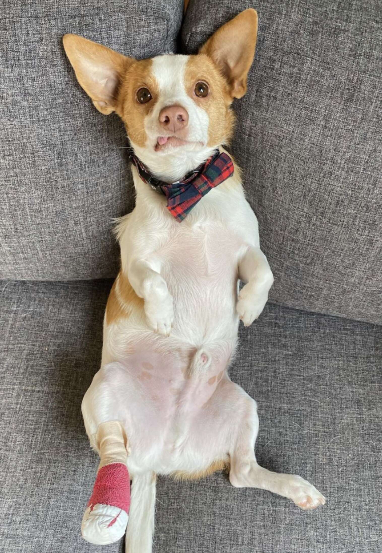 The tiny cut didn’t even need a bandage, but Jean thought it would make the pup feel better.