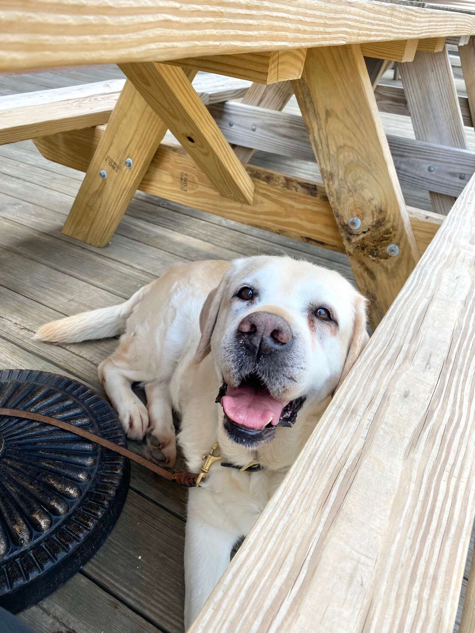 Patsy has developed a lot of favorites during her five years with her family: hiking, getting treats, ice cream trips, and meeting babies. But after all these activities, she just loves relaxing and napping on the outdoor deck.