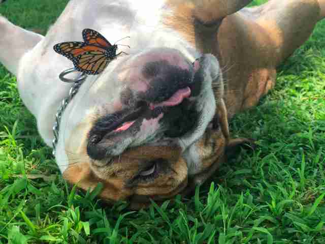 “She actually calms a lot of animals down, even ones that aren’t dogs. Maybe that’s why the butterfly decided to land on her,” Ashley shared.