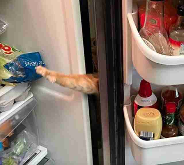 - His new hobby is sneaking in his paw through the gap in the door whenever the fridge opens — and he thinks he’s getting away with it!