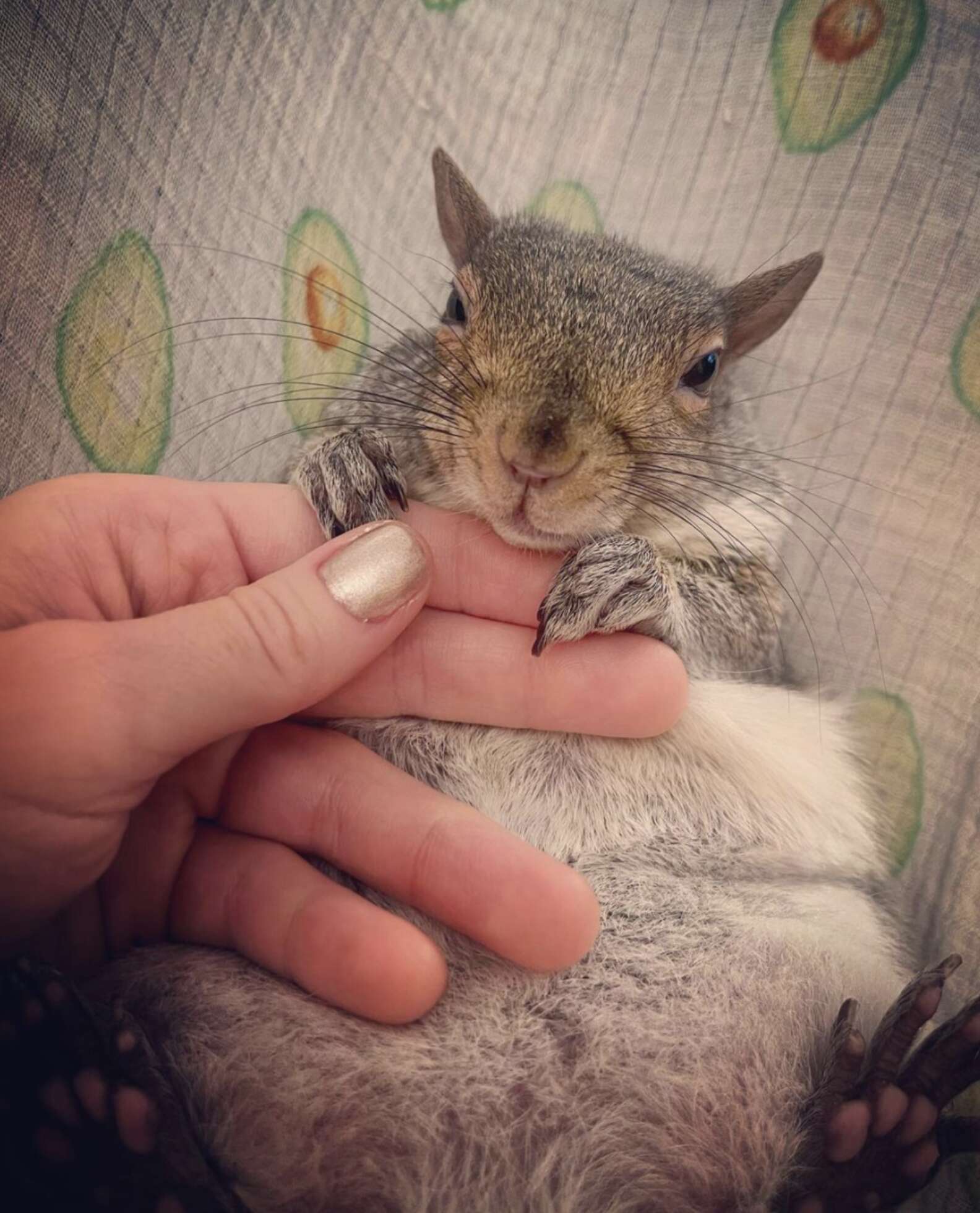- Thumbelina the squirrel is currently staying with a loving family until she’s ready to be released back into the wild.